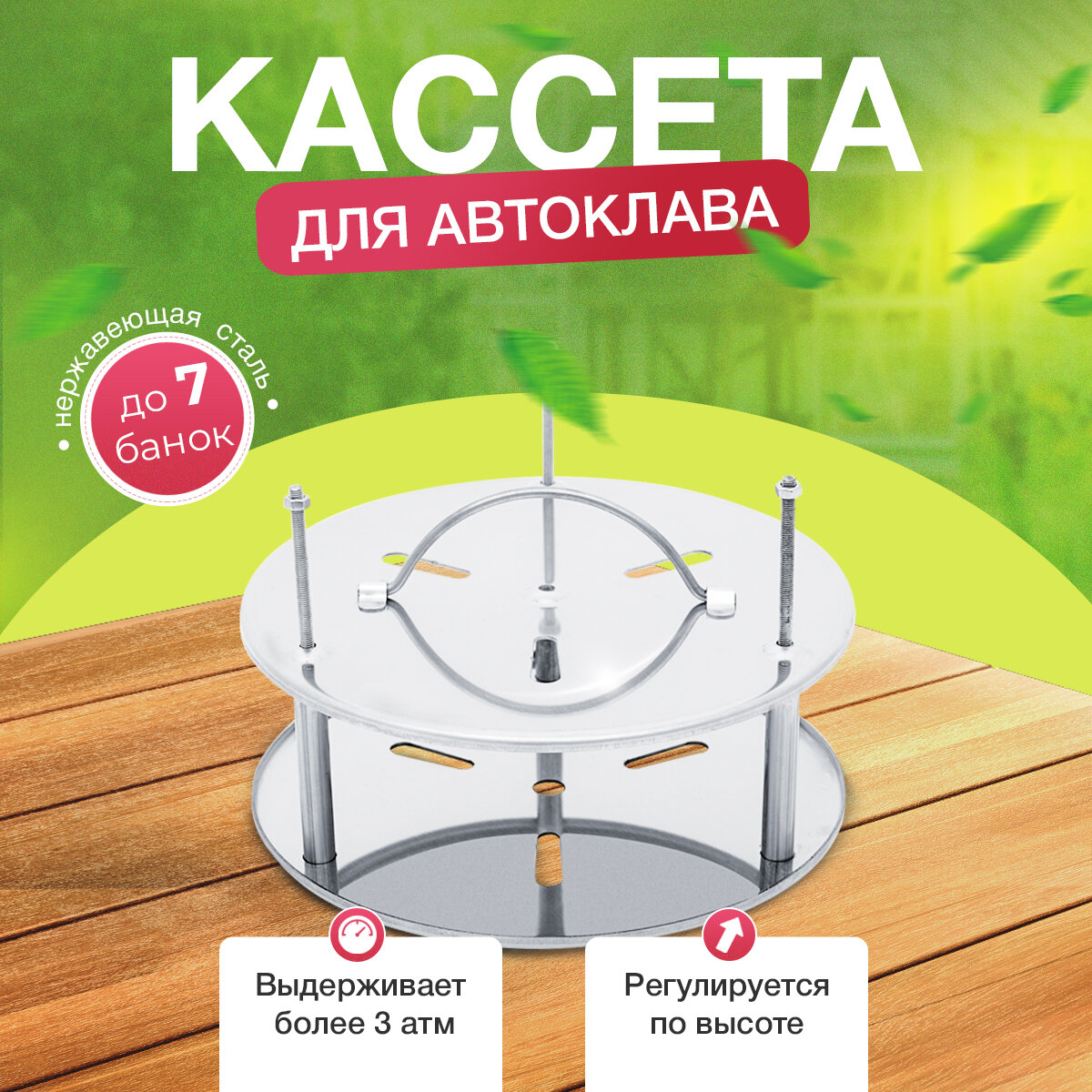 Кроме того, благодаря 6-точечной фиксации они надежно удерживают крышки банок. А подогнав кассету по высоте (она регулируемая!), вы можете использовать для консервирования любые банки.
