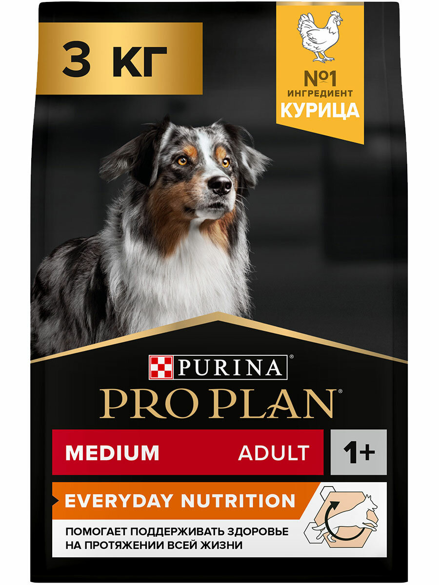 PRO PLAN ADULT DOG MEDIUM EVERYDAY NUTRITION для взрослых собак средних пород с курицей (3 кг): сравнение цен, характеристики, фото, актуальное наличие и цены.