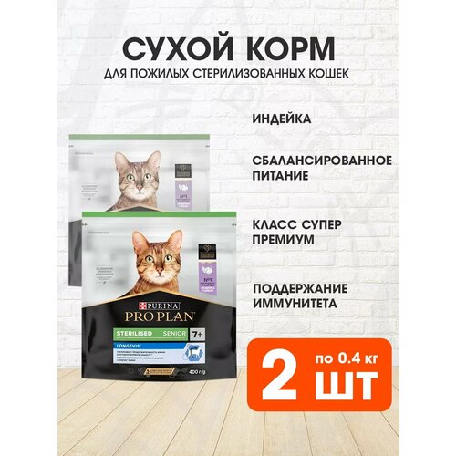 Купить PRO PLAN CAT SENIOR 7+ STERILISED LONGEVIS для пожилых кастрированных котов и стерилизованных кошек старше 7 лет с индейкой (0,4 + 0,4 кг) с доставкой по всей России. PRO PLAN CAT SENIOR 7+ STERILISED LONGEVIS для пожилых кастрированных котов и стерилизованных кошек старше 7 лет с индейкой (0,4 + 0,4 кг): сравнение цен, характеристики, фото, актуальное наличие и цены.