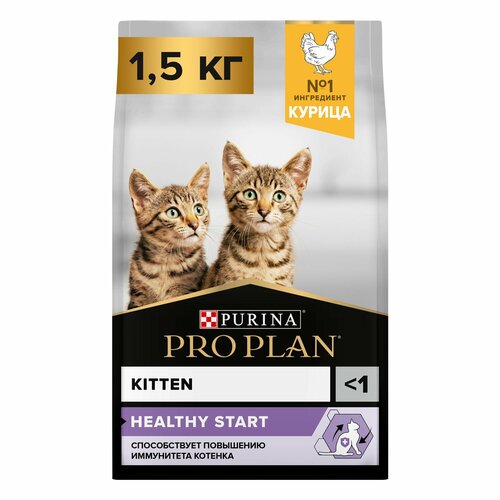 Сухой корм PRO PLAN HEALTHY START для котят, с высоким содержанием курицы, 1.5 кг. отенку необходимо много калорий, высокобелковое питание и определенная комбинация витаминов и минералов для формирования мускулатуры, роста костей и развития мозга. Все это он раньше получал с молоком матери, поэтому корм для котят должен предоставить малышу все питательные вещества, в которых он нуждается. Эксперты PRO PLAN разработали сухие корма для котят Original Kitten со специальной формулой для здорового развития котенка в течение первого года жизни.
