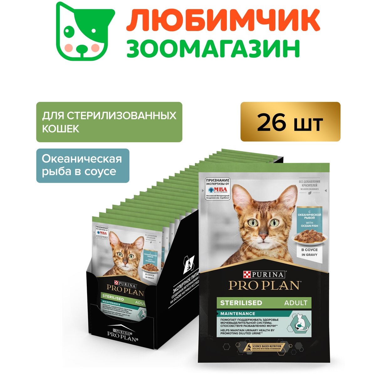 Pro Plan влажный корм для стерилизованных кошек, с океанической рыбой в соусе (26шт в уп) 85 гр: сравнение цен, характеристики, фото, актуальное наличие и цены.