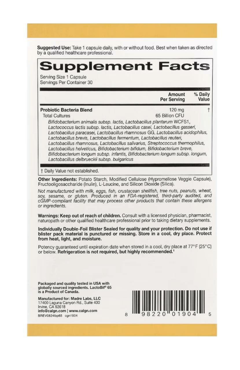 Купить Пробиотики Лактобиф 65 млрд, Probiotics LactoBif 65 California Gold Nutrition, 30 капсул с доставкой по всей России. Пробиотики Лактобиф 65 млрд, Probiotics LactoBif 65 California Gold Nutrition, 30 капсул: сравнение цен, характеристики, фото, актуальное наличие и цены.