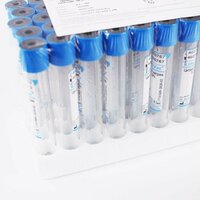 Вакуумные пробирки для коагулологических исследований с цитратом натрия - используются при исследованиях систем гемостаза; коагуляционных свойств крови: протромбин, тромбопластин, фибриноген, факторы свертывания. Пробирки заполнены буферным раствором цитрата натрия, представленного в двух концентрациях - 0.109 моль/л. (3.2%) или 0.1129 моль/л (3.8%). Выбор концентрации зависит от принятой практики лаборатории. Цитрат натрия является антикоагулянтом для сбора венозной крови с целью проведения исследований коагуляционных свойств крови. Одна часть буфера цитрата натрия смешивается с девятью частями крови (соотношение к количеству забираемой крови 1/9), pH крови остается в пределах 7.1-7.35 (важно для протромбиновых параметров). При взятии проб крови в несколько пробирок у одного пациента пробирка с цитратом должна заполняться до пробирки с активатором свертывания. Очень важно соблюдать правильное соотношение кровь антикоагулянт в пробе с цитратом. Недостаток цитрата в пробе ведет к образованию микросгустков и/или коагуляции пробы, а избыток цитрата — к искажению результатов анализа за счет связывания кальция из реагентов. Сразу после взятия образца пробирку с цитратом необходимо аккуратного перемешать не менее 5 раз для предотвращения образования микросгустков.