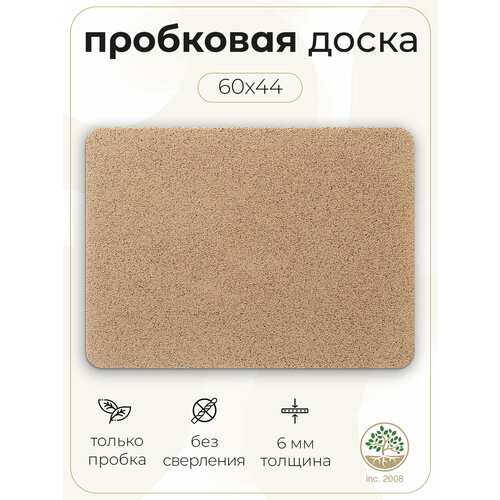 Характеристики: - Размер: 44х60 см; - Толщина: 6 мм (реальная толщина пробки, без имитаций); - Закругленные углы для безопасности и удобства.