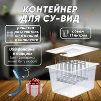 Купить Прочный пластиковый контейнер для су-вид на 11 литров прозрачная ёмкость с крышкой и металлическими разделителями на 6 порций с доставкой по всей России.