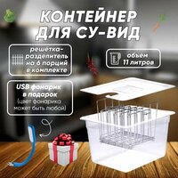 Купить Прочный пластиковый контейнер для су-вид на 11 литров прозрачная ёмкость с крышкой и металлическими разделителями на 6 порций с доставкой по всей России.