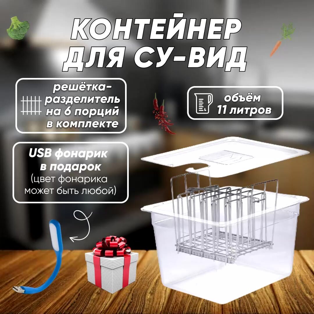 Прочный пластиковый контейнер для су-вид на 11 литров прозрачная ёмкость с крышкой и металлическими разделителями на 6 порций: сравнение цен, характеристики, фото, актуальное наличие и цены.