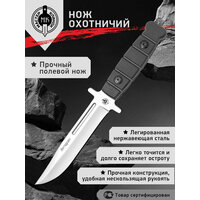 не относится к холодному оружию; марка стали: 440; твердость стали, HRC: 54-56; тип замка: Full Tang; материал инструмента: нержавеющая сталь; чехол в комплекте; вид клинка: Clip Point; заточка: прямая