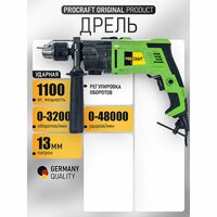 PROCRAFT Дрель электрическая ударная 1100Вт, 0-1200/0-3200 об/мин, 0-17600/0-48000 уд/мин PS1700/2: сравнение цен, характеристики, фото, актуальное наличие и цены.