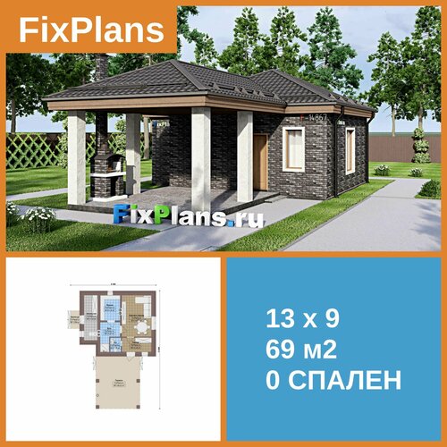 Проект бани FIXPLANS. Одноэтажный. Площадь 69.81 м2 F-14867 Размер 13.08 х 9.48: сравнение цен, характеристики, фото, актуальное наличие и цены.