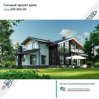 Проект большого дома с просторной планировкой, террасой и верандой 259-360-1М: сравнение цен, характеристики, фото, актуальное наличие и цены.