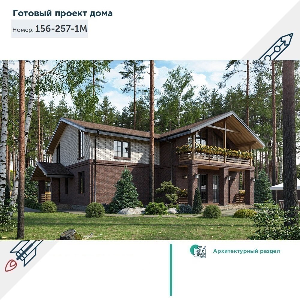 Проект большого коттеджа с террасой, банным комплексом и балконом на втором этаже 156-257-1М: сравнение цен, характеристики, фото, актуальное наличие и цены.