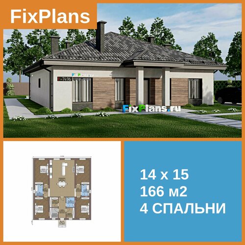 Проект дома FIXPLANS. Одноэтажный. Площадь 166.79 м2 F-7496 Размер 13.75 х 14.7: сравнение цен, характеристики, фото, актуальное наличие и цены.