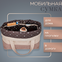 Проектная сумка для вязания и рукоделия (большого размера: высота 28,5 см, ширина 41 см, дно 14,5 х 27 см), украшенная тканью-компаньон. Цвета: кремовый и светло-бежевый. Сумка выглядит максимально эффектно и очень стильно за счет рисунка "Херрингбоун" (ткань “в ёлочку”) Такая будет, только у Вас! Теплота и спокойствие природы заложена в сочетании цветов сумки. Сумка на подкладке коричневого цвета с молочным рисунком затягивается на шнурок с двух сторон. Внутри по всему периметру 13 карманов разного размера - от самых узких: для крючков, ножниц (сниппера), ручки, маркера, сантиметровой ленты, наперстка, до самых вместительных: для набора спиц, схем, блокнота, телефона, подставки под телефон, счетчика рядов и других принадлежностей, которые будут у Вас всегда под рукой. У вышивальщиц уберутся пяльцы, вышивка, схема, ножнички, магниты, игольницы, канва и т. д. Сумка поможет организовать рабочие пространство и держать в порядке все нужные инструменты для рукоделия. Имеются две ручки длинной 40 см, металлический люверс для пряжи, разъемное кольцо для маркеров в подарок и небольшой магнит для временного прикрепления маленьких металлических предметов. Проектную сумку удобно брать с собой в дорогу, на прогулку, в путешествие, везде, где можно присесть и получить удовольствие от любимого занятия. Захотел повязать - достал сумку, а все необходимое уже в ней. Это отличный подарок любимой маме и дочке, жене и бабушке, тёте и свекрови или сестре и коллеги по работе на день рождения, 8 марта, день матери, день учителя, 14 февраля или Новый год. Обратите внимание: сумка продается пустой, без внутреннего вязального реквизита, который есть на фотографиях. Изображения и цвет представленного товара могут незначительно отличаться от оригинала продукции, в зависимости от разрешения и настроек вашего монитора, а также условий освещения при съемке.