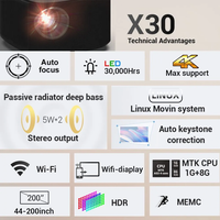 BYINTEK X30 - это проектор для умного домашнего кинотеатра, который оснащен лицензионным Netflix и YouTube Premier Video TV System. Он позволяет пользователям смотреть свои любимые фильмы, сериалы и телешоу на большом экране без подключения к интернету. Проектор поддерживает разрешение до 4K и имеет встроенный ЖК-дисплей Full HD IPS для более широкого цветового диапазона, чем аналогичные проекторы 1080p. С функцией коррекции угловых трапецеидальных искажений, он может быть использован для боковой проекции. Беспроводная версия поддерживает трапецеидальное искажение 6D и декодирование звука AC3. Проектор также поддерживает беспроводной дисплей для игр на смартфонах и многоэкранный, зеркальный экран, Miracast и Airplay.