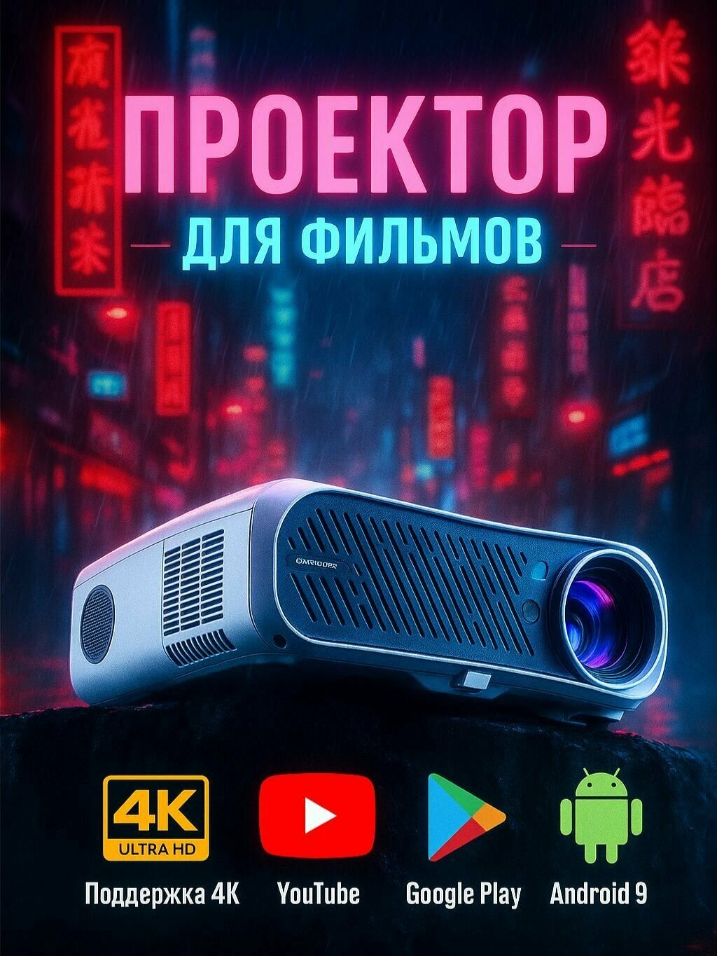 Купить Проектор для фильмов CAIVVEI LED-345MA12AW поддерживает 4k Android 9.0 с доставкой по всей России.
