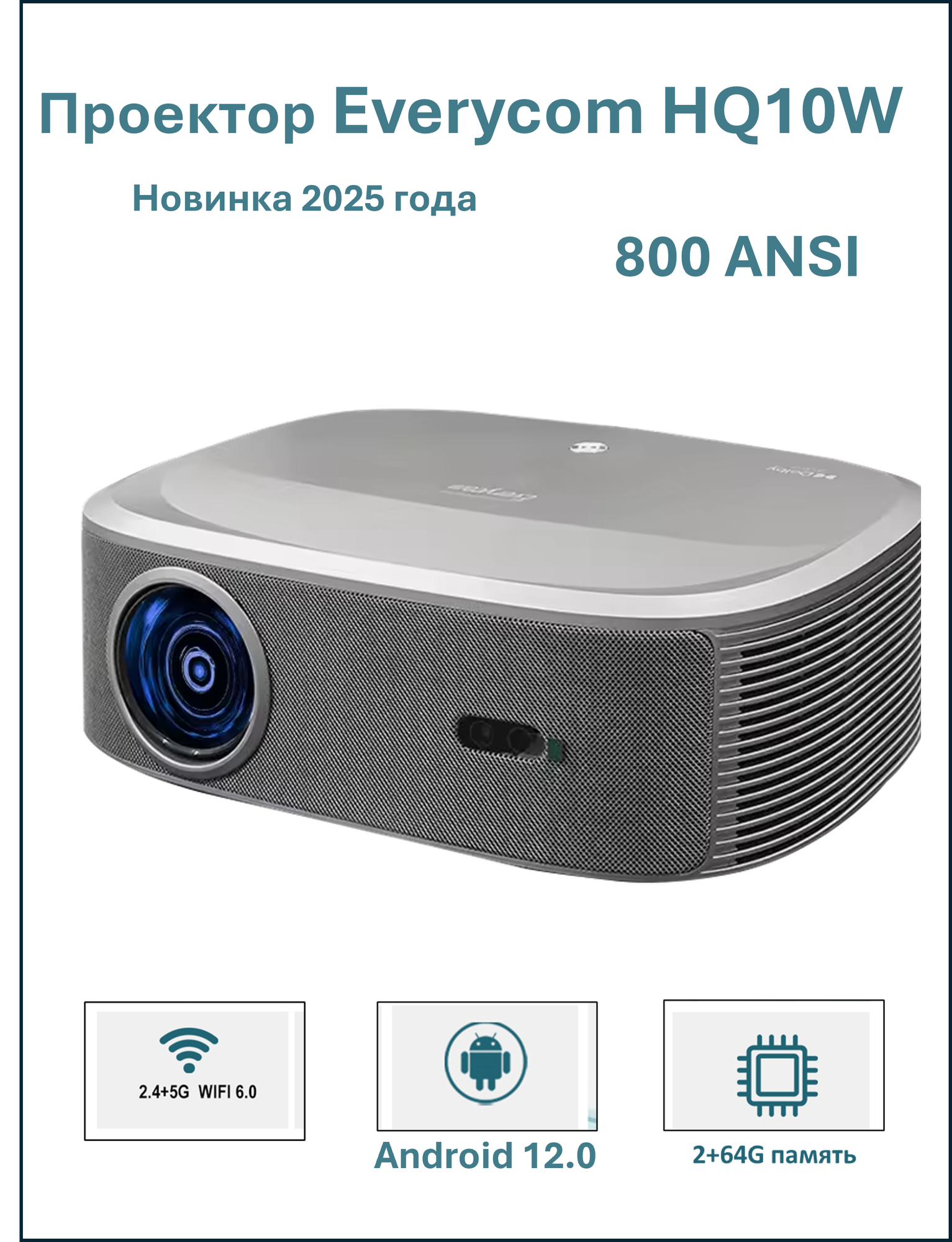 Проектор Everycom HQ10W Full HD , Android 12.0, 800 Ansi люменов