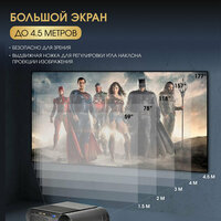 Максимальный размер диагонали 4,5 м, т. е. предусмотрена возможность развернуть изображение во всю стену. Минимальное проекционное соотношение 1,2-1,9:1.