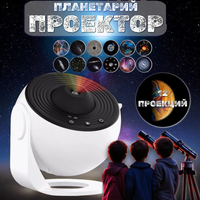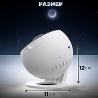 Проектор звездного неба с 12 сменными картриджами - прибор, который проецирует красивые изображения звезд, туманностей, создает имитацию ночного неба на потолке или стене комнаты. Галактический станет прекрасным ночником для вашего ребенка! Компактный прибор может демонстрировать большое изображение млечного пути, роскошный вид яркого северного сияния, знакомить с галактиками и глубоким полем Хаббла, Малым Магеллановым Облаком, с особенностями солнечной системы, планеты Земля и ее спутника Луны. Проектор работает от сети, изображения меняются с помощью сменных картриджей. Чтобы наслаждаться чудесной проекцией, включите ваш домашний планетарий в стильном дизайне, замените картридж на новый, запустите проектор. Вы можете регулировать угол наклона и управлять скоростью вращения, настраивать время работы. Проектор оснащен светодиодной лампой большой мощности. Ее свет подарит комнате романтическую атмосферу звездной ночи, визуально расширит пространство, позволит ощутить себя частью вселенной и насладиться космическим пейзажем. Вы можете расположить проектор-ночник на прикроватной тумбочке или столике, чтобы наслаждаться его волшебным и удивительным разноцветным свечением. Он дарит любой комнате дома или квартиры уютную обстановку и возможность релаксации. Проектор звездного неба создаст успокаивающую и умиротворяющую декоративную среду, которая будет полезна для спокойного засыпания и крепкого сна. Домашний мини проектор - прекрасный и милый подарочный вариант для родных и близких, для друзей и знакомых, для взрослых женщин и мужчин, парней и девушек - подростков, мальчиков и девочек - детей.