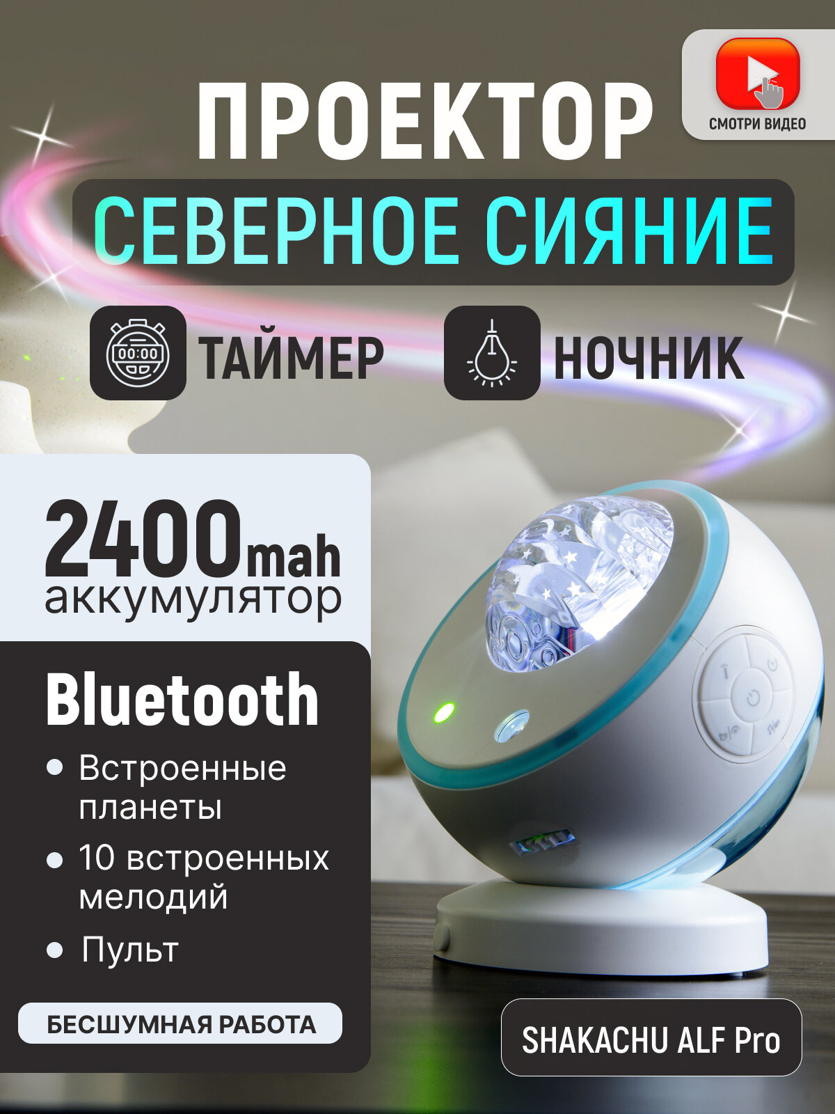Купить Проектор ночник звездного неба, беспроводной SHAKACHU ALF Pro (Северное сияние) с доставкой по всей России.