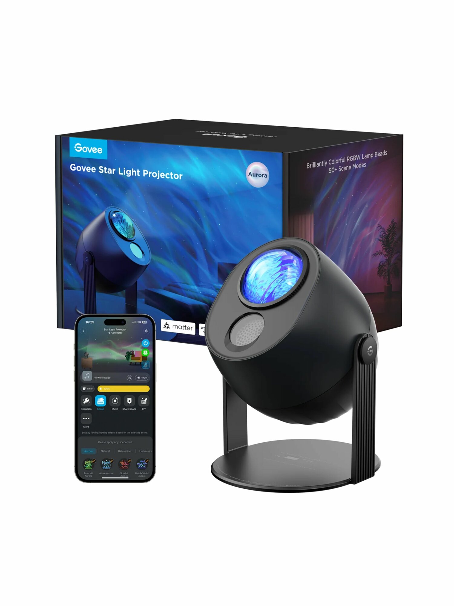 Govee Star Light также может работать как умный будильник, позволяя настраивать таймер сна, пробуждения и автоматического выключения через приложение Govee Home. Устройство интегрируется с Alexa, Google Assistant и Matter, что дает возможность управления голосовыми командами.