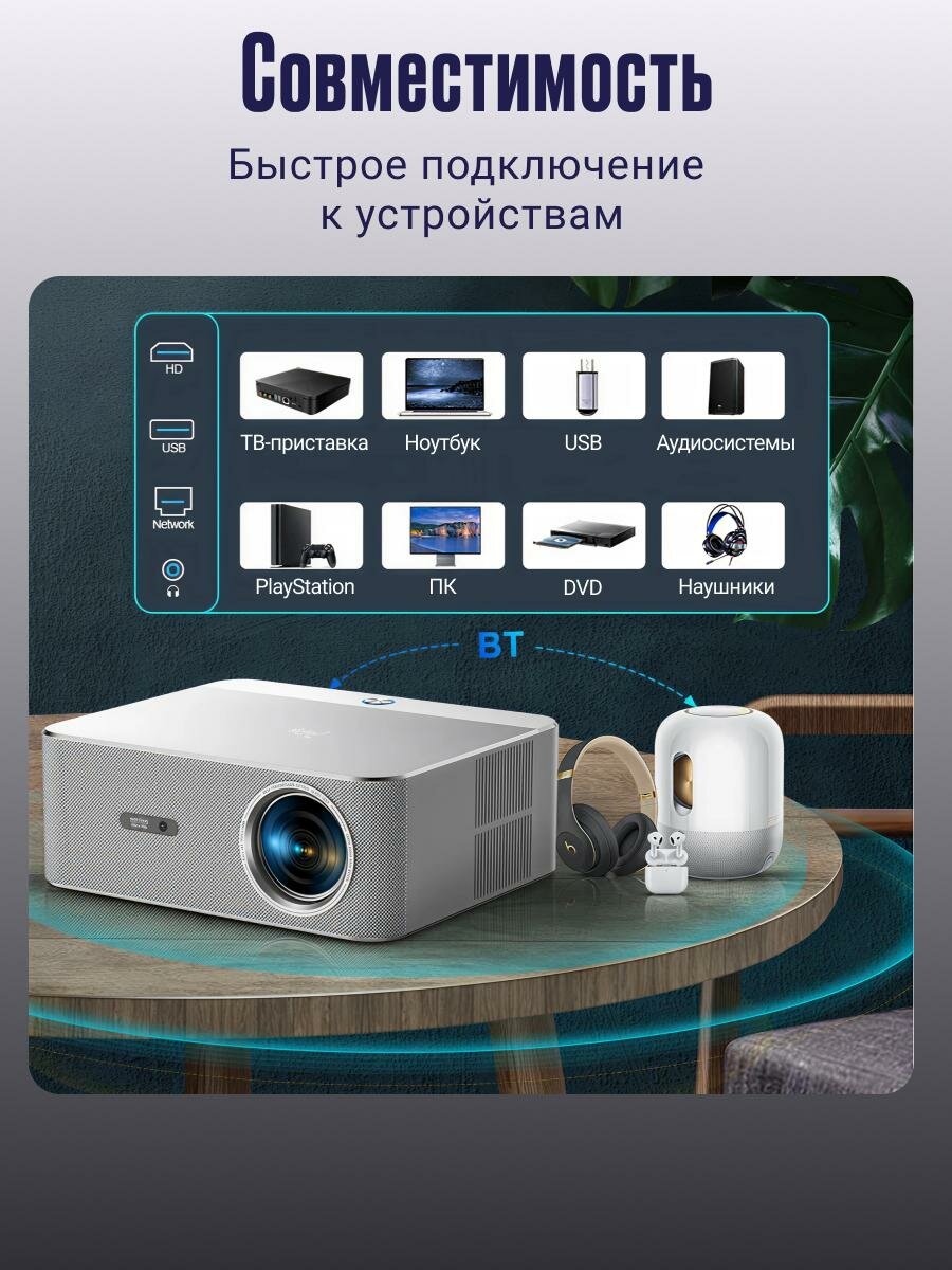 ThundeaL Проектор Портативный проектор PROGAGA PG610W с разрешением 1080P, 4k Android WiFi, 25000 люмен, 32G, 1LCD, серебристый: сравнение цен, характеристики, фото, актуальное наличие и цены.