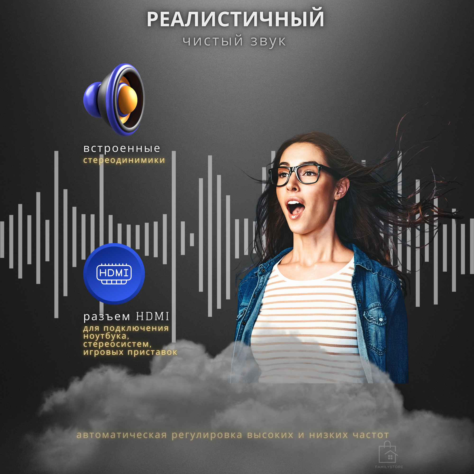 | Особенности | Smart TV, картридер, колонки, питание от аккумулятора, сабвуфер, универсальный (мультибрендовый) пульт |
