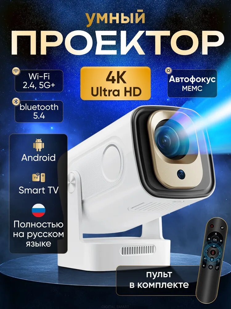 Купить Проектор Умный 5G 2025, FULL HD 4K для фильмов и игр, Встроенные динамики, Wi-Fi, Bluetooth с доставкой по всей России.