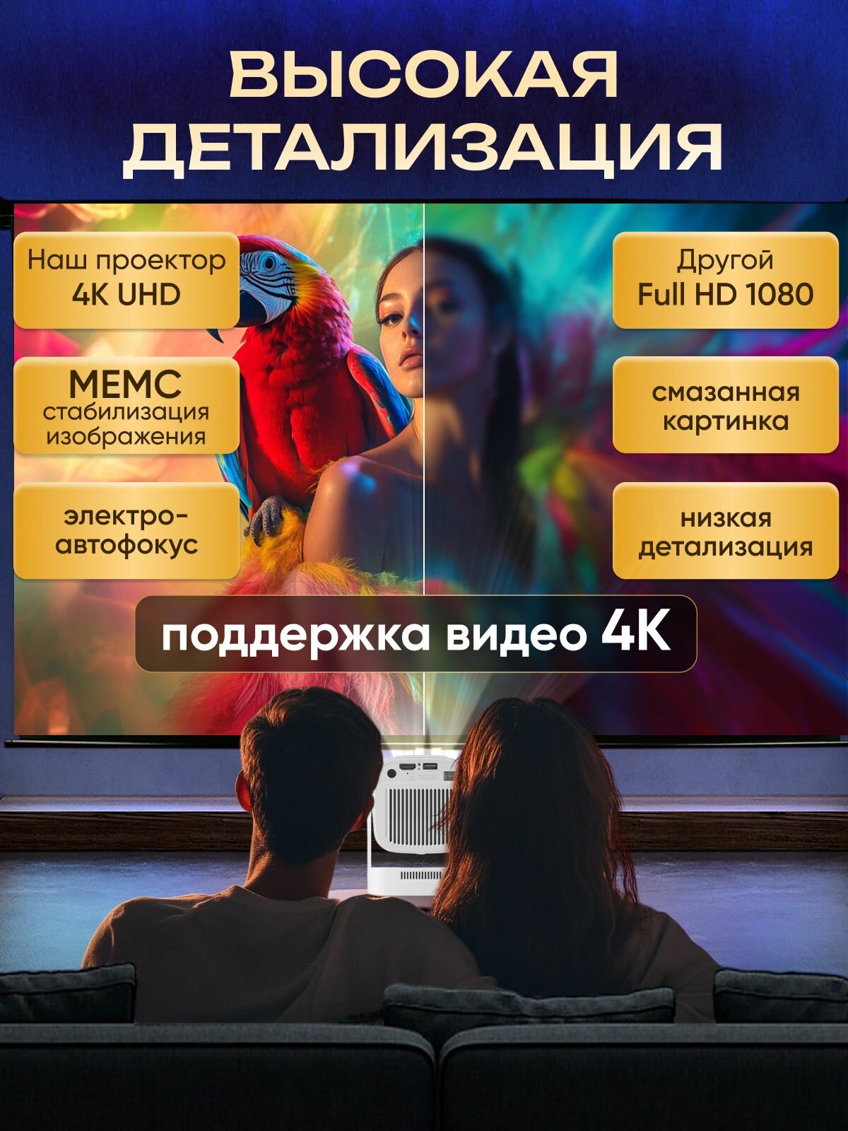 Проектор Умный 5G 2025, FULL HD 4K для фильмов и игр, Встроенные динамики, Wi-Fi, Bluetooth: сравнение цен, характеристики, фото, актуальное наличие и цены.