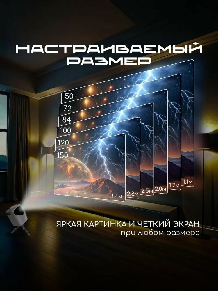 Проектор, Умный 5G 2025 FULL HD 4K для фильмов и игр, Встроенные динамики, Wi-Fi, Bluetooth, HD, 1LCD, белый: сравнение цен, характеристики, фото, актуальное наличие и цены.