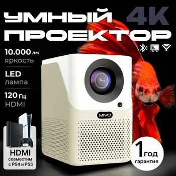 Проектор Умный проектор для фильмов 4K, UltraHD, руссифицирован, белый, светло-бежевый: сравнение цен, характеристики, фото, актуальное наличие и цены.