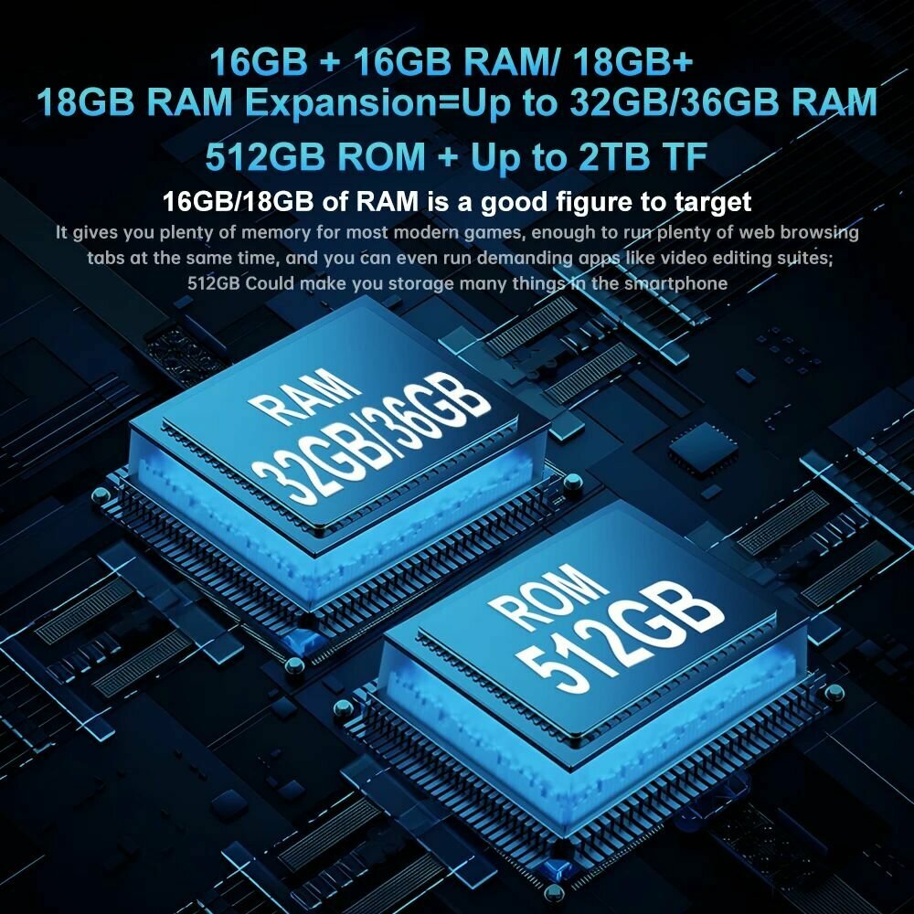 ОЗУ+ПЗМ --32 ГБ/36 ГБ (16 ГБ/18 ГБ+16 ГБ/18 ГБ виртуальной ОЗУ) +512 ГБ/Поддержка TF-карты макс. 2 ТБ