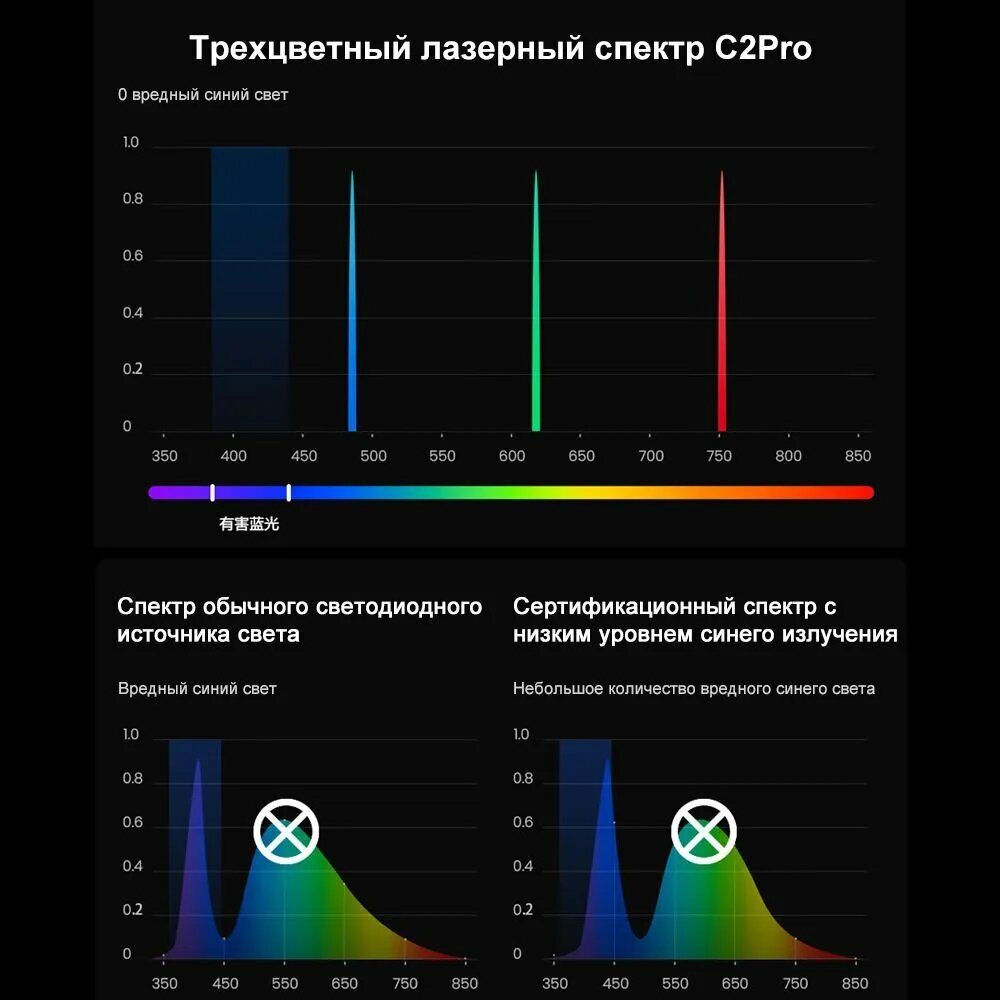 Проектор Vidda C2 PRO построен на новейшей технологии "Vi-LPU" с новым 3-х цветным лазером "MCL38", благодаря которому удалось добиться идеальной цветопередачи ΔE<0,9 с отличной яркостью 3800 CVIA, цветовой охват равен 110% BT.2020, а контраст достигает 2000:1! Новый лазер 2024 года "MCL38" избавился от "спеклов" присущие предыдущей версии лазера который использовался в проекторах 2023 года!