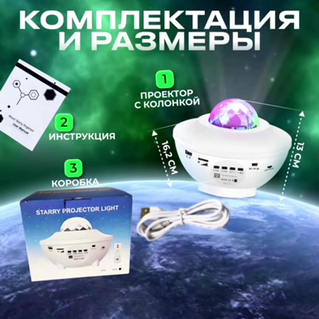 Проектор звездного неба Goodly Starry Projector с пультом, Bluetooth колонка и MP3 плеер, лазерный проектор, светильник ночник, белый: сравнение цен, характеристики, фото, актуальное наличие и цены.