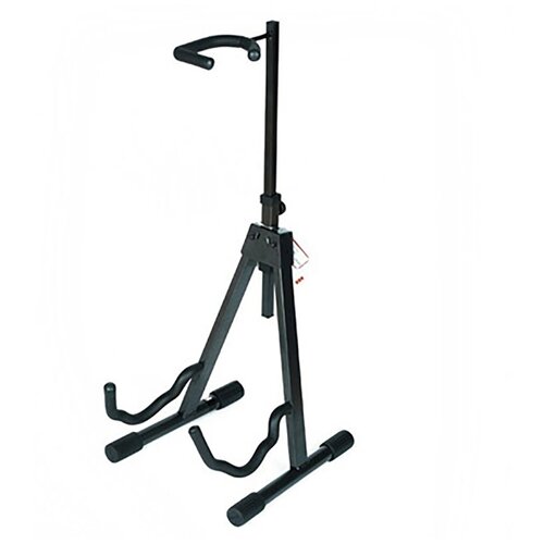 Регулируемая стойка с держателем грифа для акустических, классических, электро и бас гитар. Все концы прорезинены для защиты инструмента. Вертикальная стойка с регулируемым по высоте защитным хомутом для грифа. Антискользящий натуральный каучук. Универсальная защита адаптированна к любому инструменту.