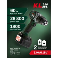 Купить Профессиональная дрель-шуруповерт ударная бесщеточная KLPRO KLDM18B-50 (18 В / 5,0 Ач, 60 Нм) с доставкой по всей России. Профессиональная дрель-шуруповерт ударная бесщеточная KLPRO KLDM18B-50 (18 В / 5,0 Ач, 60 Нм): сравнение цен, характеристики, фото, актуальное наличие и цены.