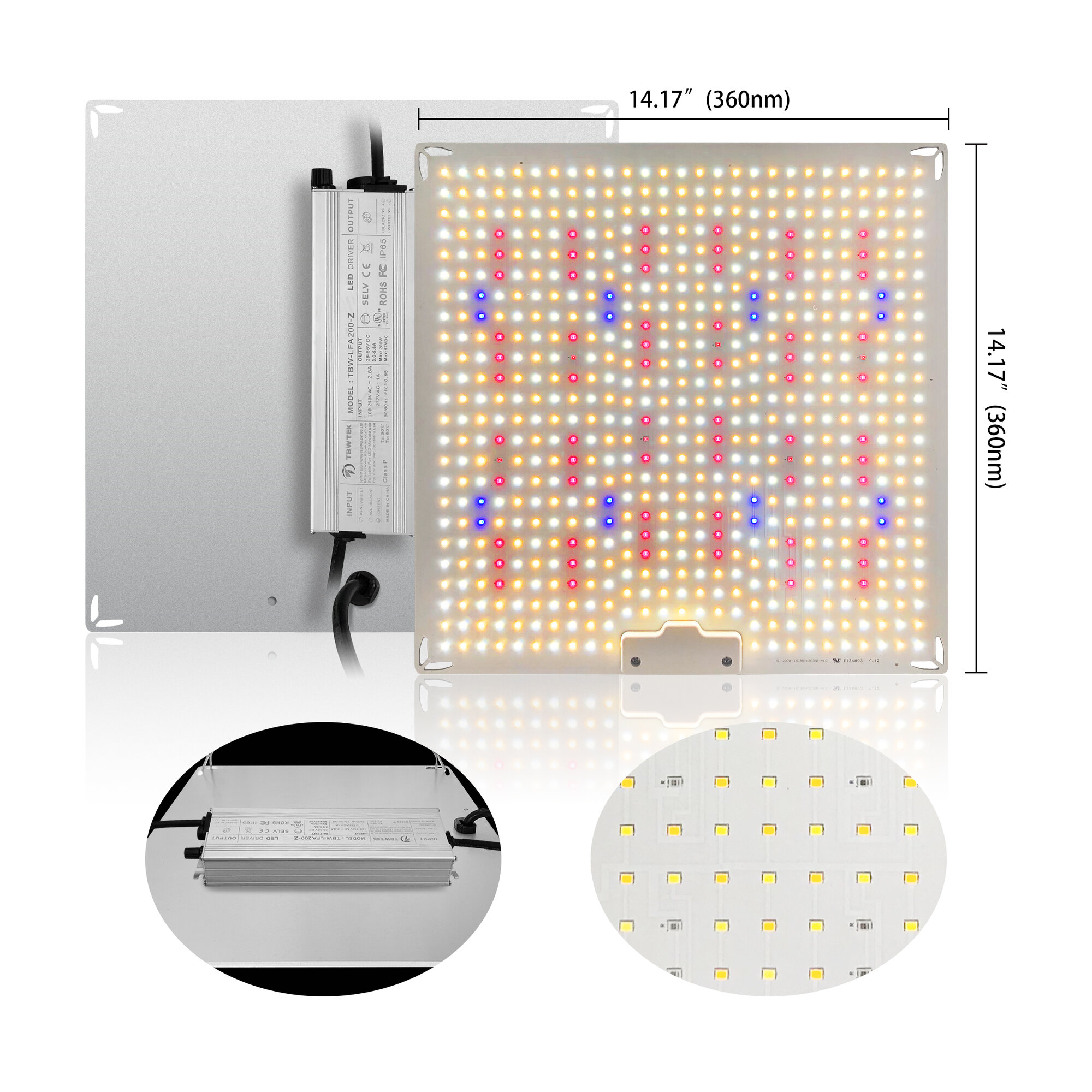Профессиональная фитолампа Quantum board Q200P с димером 200W полного спектра, ускоряет рост рассады, помогает прорастать, цвести и плодоносить. Подходит для выращивания всех видов домашних цветов, овощей, микрозелени, комнатных растений и рассады дома. Фитолампу можно использовать в домашних условиях, теплице или гроубоксе методом гидропонного выращивания. Светодиодный фитосветильник оснащена драйвером, для защиты от короткого замыкания, скачка напряжения, перегрева. Класс защиты IP65, который дает возможность работать во всех влажных и слабо вентилируемых гроу боксах и имеют сертификацию ETL. Квантум-борд из высококачественного алюминия, большая поверхность гарантирует равномерное распределение тепла. Порадуйте свои растения искусственным солнцем, а себя богатым урожаем! Энергоэффективность: высокая светоотдача PPFD. Массивный алюминиевый радиатор фитолампы обеспечивает отвод излишки тепла и не требует дополнительных систем охлаждения. Рабочий режим эксплуатации фито лампы от - 40 до +50 C. Наличие опции диммирования (регулировки мощности) позволяет настроить нужную яркость и использовать светодиодную панель для различных этапов роста вашего растения. Фитолампа имеет несколько спектров свечения: Теплый белый свет (3000К).284шт. - Ускоряет цветение растений, делает цветы крупными и яркими. Белый холодный свет (6500K).282шт. - Способствует прорастанию и увеличивает скорость роста растений. Синий (460 nm).8шт. - Способствует росту и укреплению корневой системы. Красный свет (660 nm).68шт. - Дает больше листьев и урожая в сочетании с синим светом. Инфракрасный свет (730 nm).4шт. - Ускоряет конверсию фитохрома, позволяет растению давать больший урожай. В комплекте со светильником идет провод RJ12, которые предназначены для управления группой через контроллер. Мощность фитолампы: 200 Вт; Количество светодиодов: 646шт. SAMSUNG LM281B PLUS; Напряжение фитолампы: 100-277 Вольт, 50/60 Hz; Диммирование: 0-10 Вольт; Срок службы светодиодов: Более 50 000 часов; Размер: 360*360*45мм; Вес: 2.2кг.