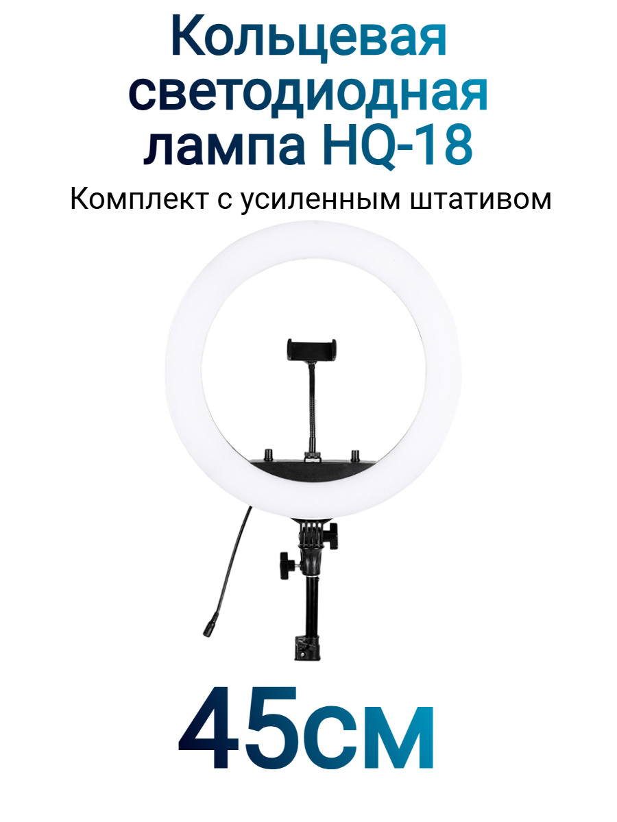 Откройте мир безупречного освещения вместе с профессиональной кольцевой лампой HQ-18 на прочном штативе высотой 2.1 метра. Эта уникальная система создана специально для тех, кому важно высокое качество изображений и удобство работы при съёмке.