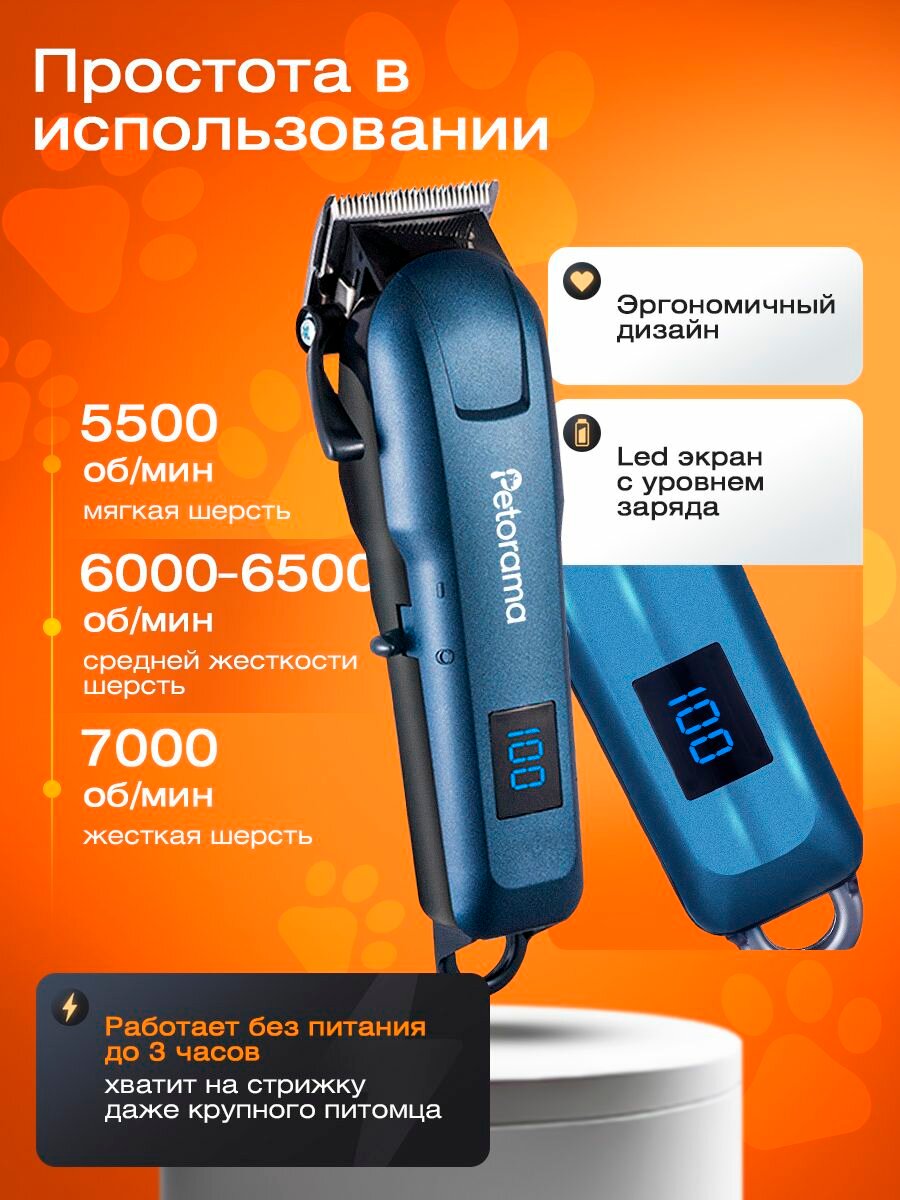 Профессиональная машинка для стрижки собак и кошек от бренда Petorama – это идеальный выбор для ухода за вашим питомцем. Эта модель оснащена аккумулятором, который заряжается всего за 2 часа и обеспечивает более 3 часов непрерывной работы. Машинка предназначена для стрижки не только собак и кошек, но и грызунов, что делает её универсальным инструментом для любого владельца домашних животных.