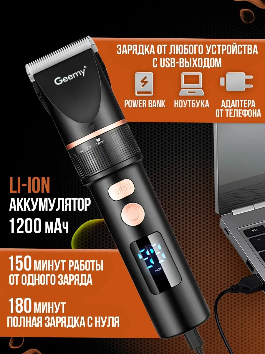 Купить Профессиональная машинка для стрижки волос, бороды и усов Geemy GM-6609, 4 насадки с доставкой по всей России.