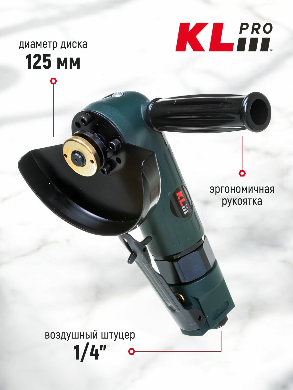 Купить Профессиональная пневматическая шлифмашина (болгарка) KLPRO KLHA185 (125мм, 1100 об/мин, штуцер 1/4″) с доставкой по всей России.