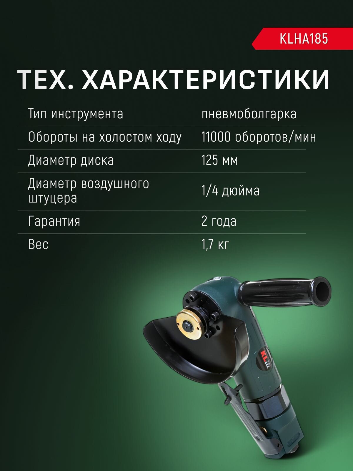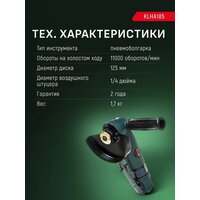 Профессиональная пневматическая шлифмашина (болгарка) KLPRO KLHA185 (125мм, 1100 об/мин, штуцер 1/4″): сравнение цен, характеристики, фото, актуальное наличие и цены.