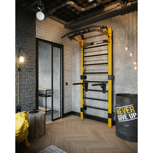 Профессиональная шведская стенка с брусьями и турником Domsen Fitness Ds46 YELLOW