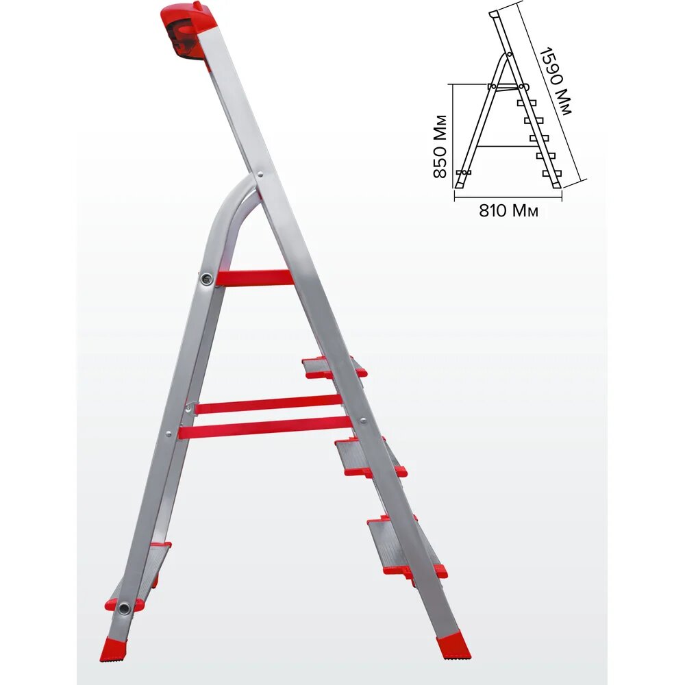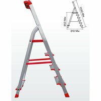 В конструкции стремянки предусмотрено 4 ступени, что обеспечивает устойчивость и безопасность при работе.