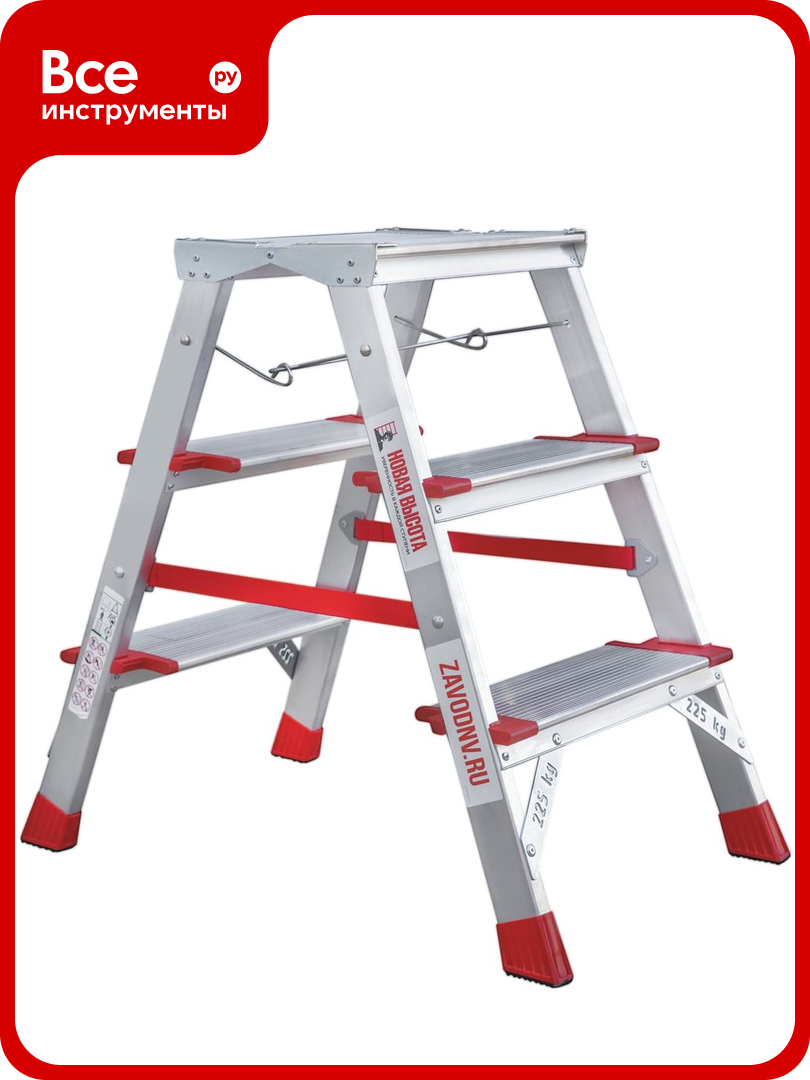 Купить Профессиональная стремянка Новая Высота NV3127, 2×3 ступени 130 мм, площадка 350×260 мм, Max нагр. 225 кг, 2К башмаки, 3127203 с доставкой по всей России.