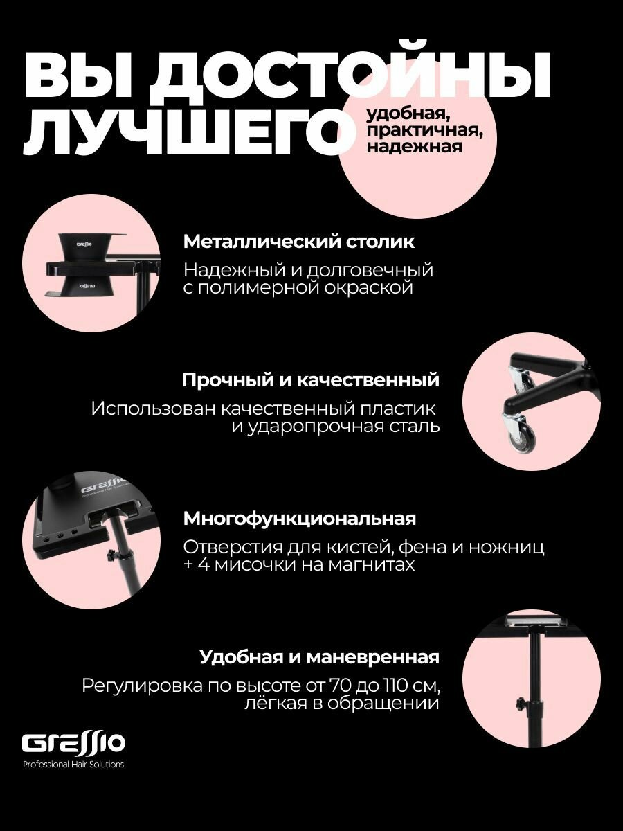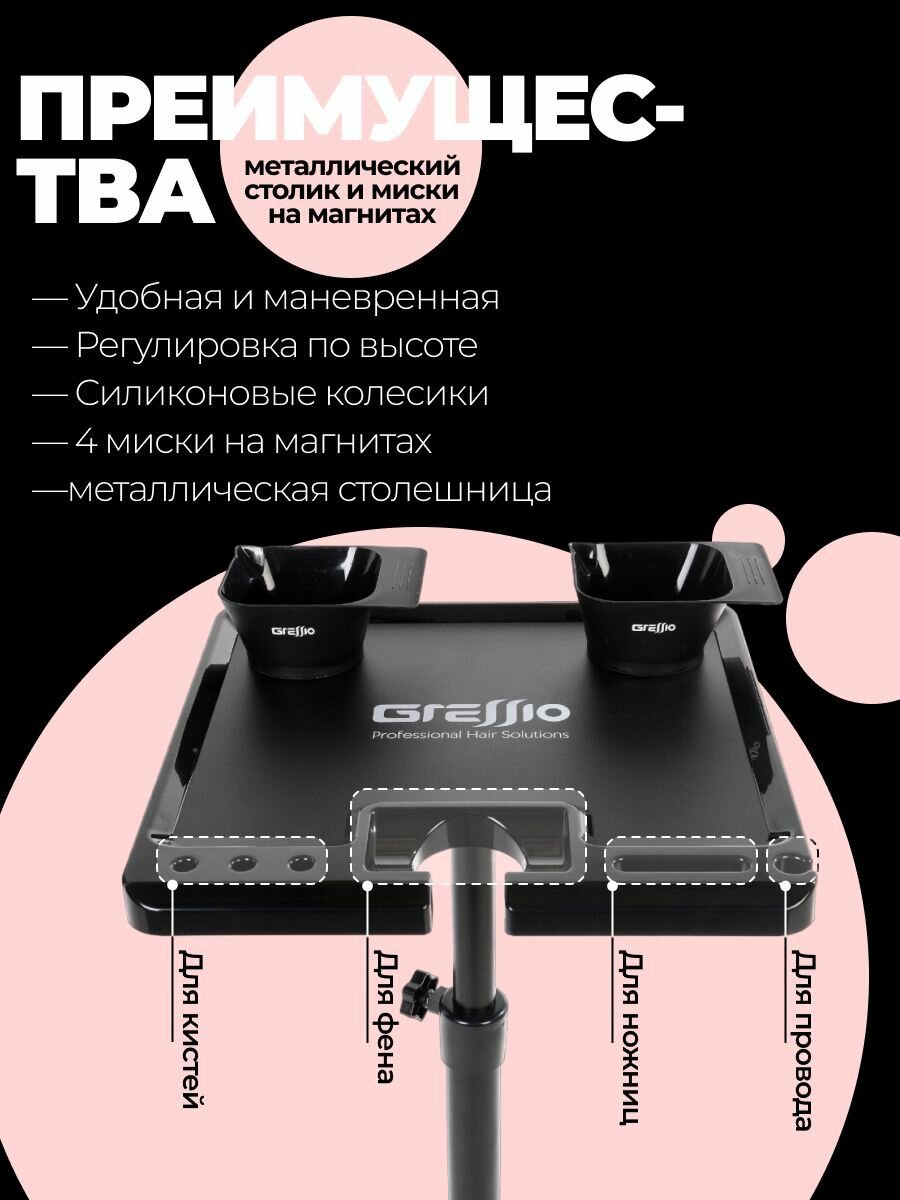 Профессиональная тележка Gressio для парикмахера колориста с магнитным столиком: сравнение цен, характеристики, фото, актуальное наличие и цены.