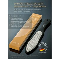 Сторона с мелким рисунком шлифует кожу до идеально гладкой поверхности. Пользуясь таким инструментом, Вы интуитивно понимаете, когда ороговевший слой уже снят. Терка двусторонняя, при этом стороны имеют разную жесткость для двухфазной обработки кожи стоп. Для производства используются качественные экологичные материалы: нержавеющая сталь и безвредный очень крепкий пластик. Удобная ручка с нескользящим покрытием позволяет крепко взяться за инструмент и контролировать каждое движение. Процедура не займет более 5-7 минут благодаря особому строению рабочей поверхности.