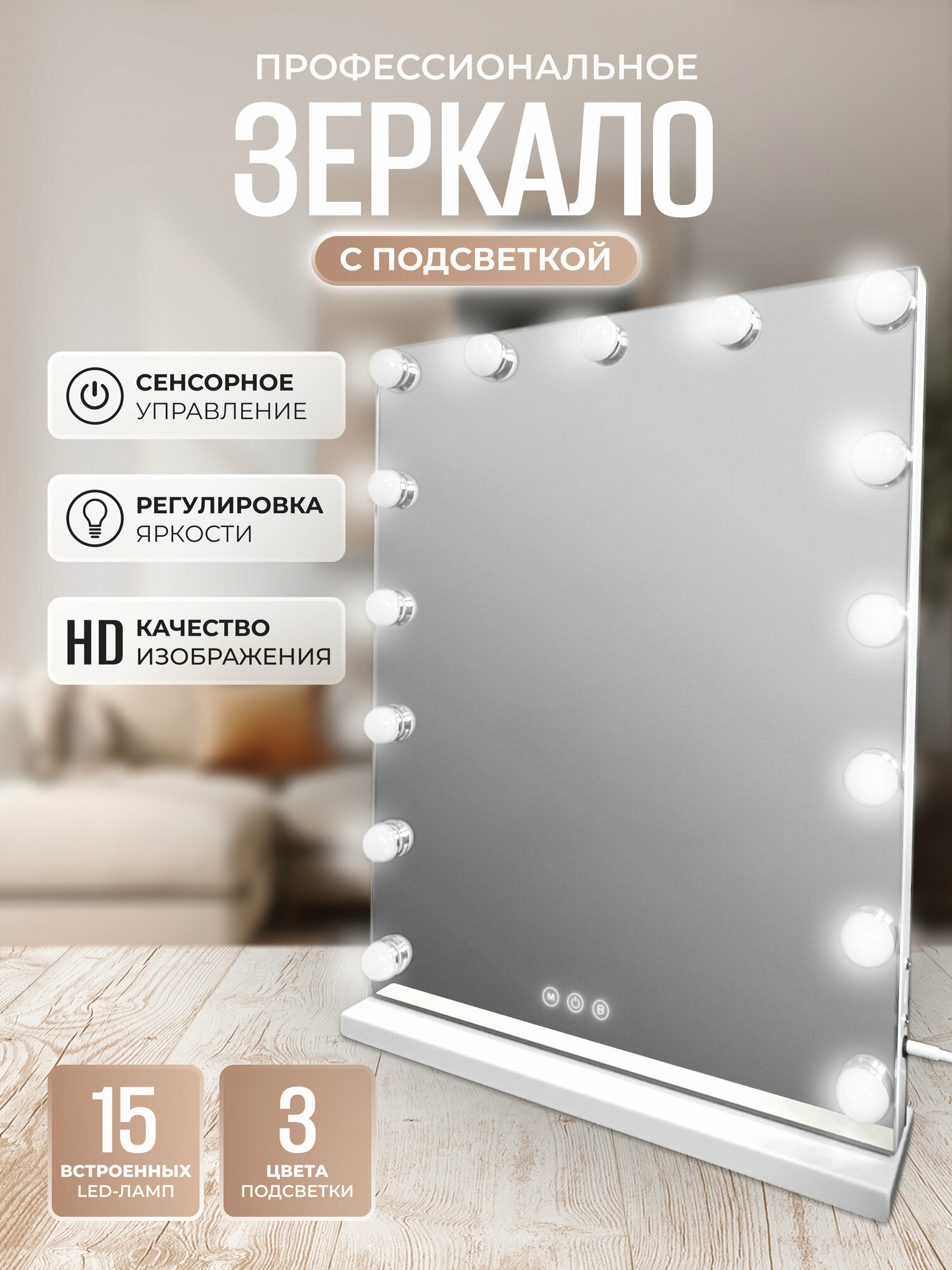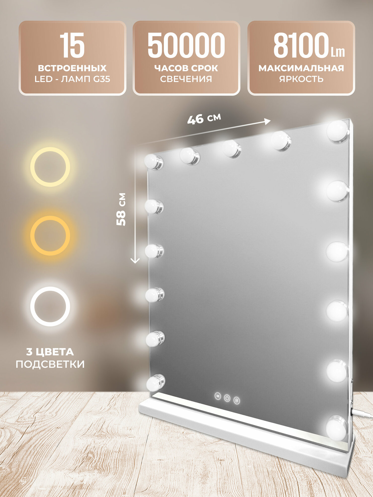 Купить Профессиональное настольное зеркало для макияжа с подсветкой, 58×46см, FENCHILIN с доставкой по всей России.