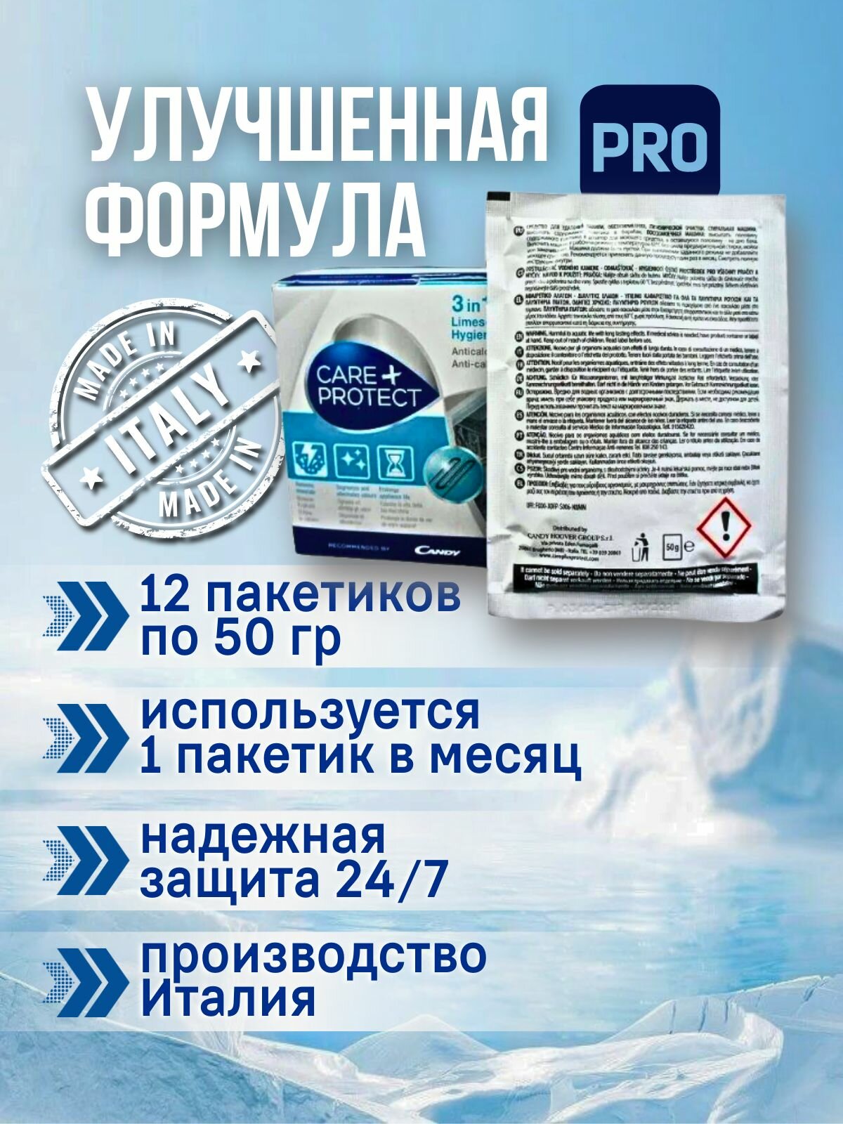 Купить Профессиональное средство для удаления накипи и жира (антинакипин) Care+Protect для стиральных и посудомоечных машин с доставкой по всей России.