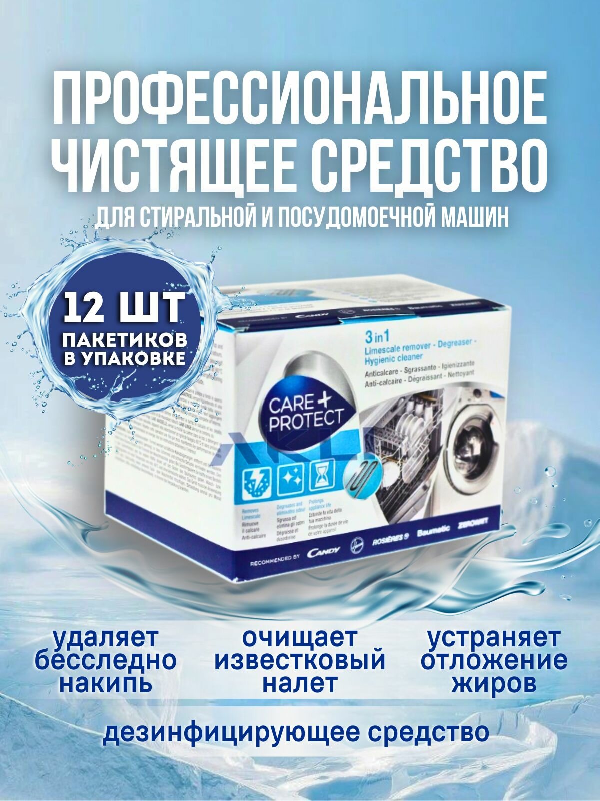 Профессиональное средство для удаления накипи и жира (антинакипин) Care+Protect для стиральных и посудомоечных машин: сравнение цен, характеристики, фото, актуальное наличие и цены.